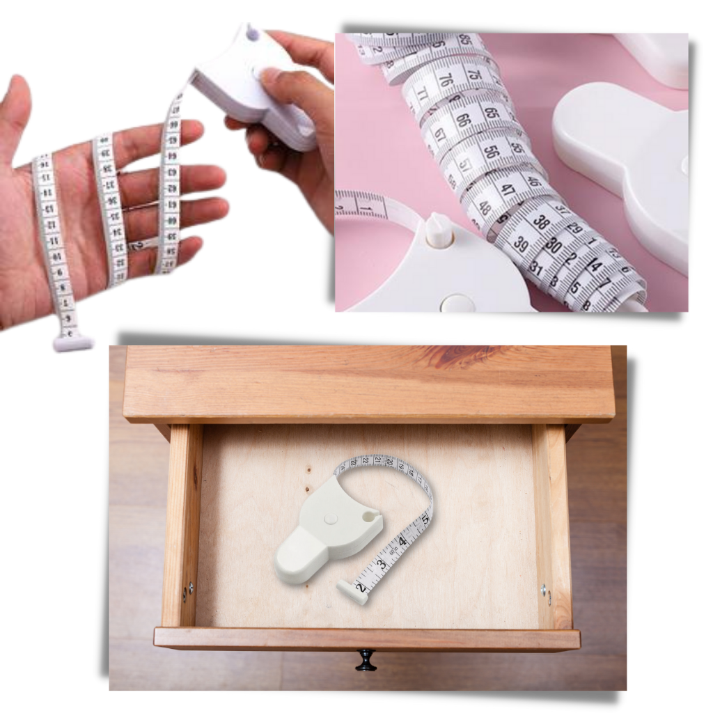 The extendable tape measure is made of ABS and Fiberglass - a soft and flexible material. It does not stretch or warp, avoiding injury or cut. It's easy to use, light in weight, compact and portable, so carry it with ease wherever you need it and store it in a drawer when you don’t need it as it doesn’t occupy much space. Furthermore, it will be the best tool for you to take good measurements with long service life.